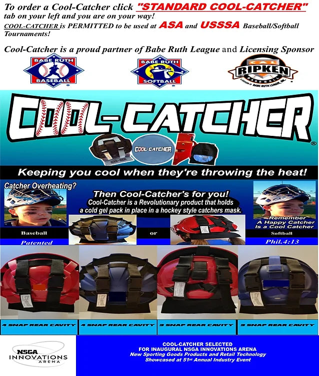 Cool Catcher keeps your favorite catcher cool on those HOT summer days behind the plate. Fits in all Hockey style helmets only.